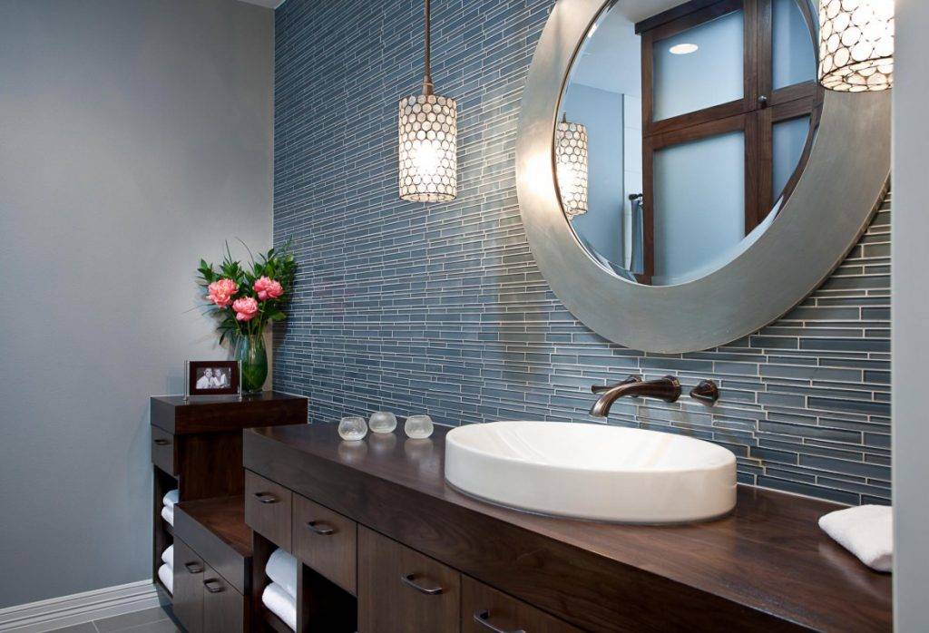 Что касается подвесных светильников, то для них можно сделать интересные абажуры или плафоны. Нужно постараться, чтобы их вид хорошо гармонировал со стилем самой комнаты. В роли плафонов могут выступать и морские фонари. Красиво будут смотреться и лампы, сделанные под старину. Декор ванной с их помощью значительно преобразится.