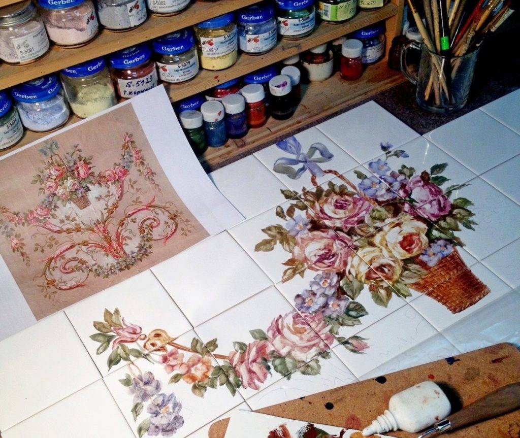 Нанесение рисунка на кафельную плитку