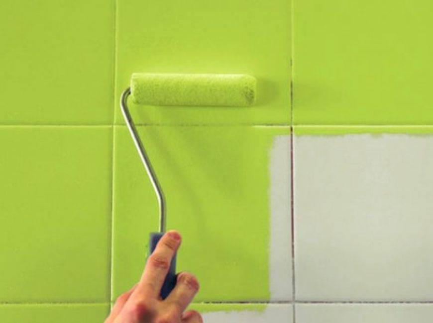 - Нанесение сплошного слоя специальной краски на старый кафель.