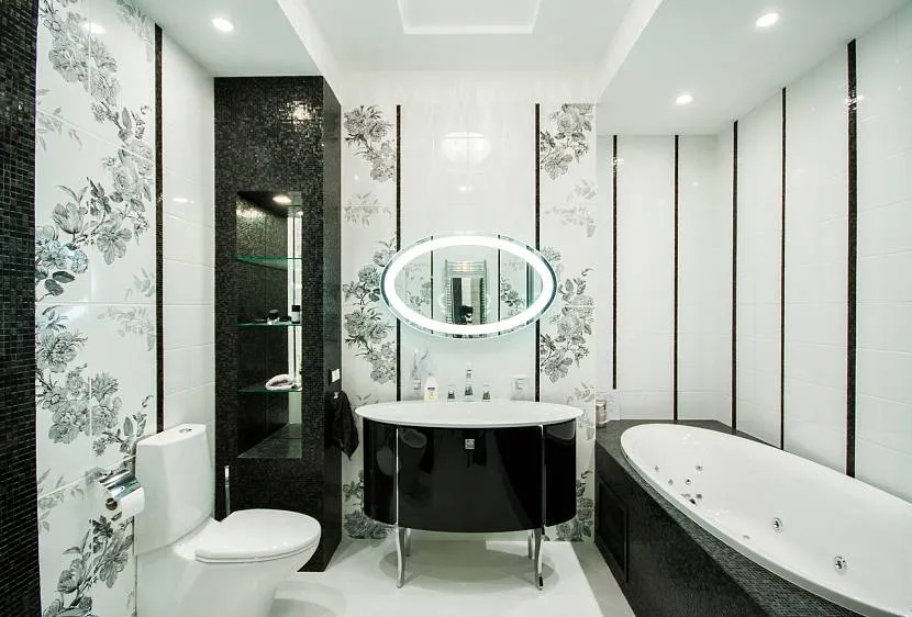 На что обращать внимание, оформляя ванную комнату черно-белыми пластиковыми панелями: