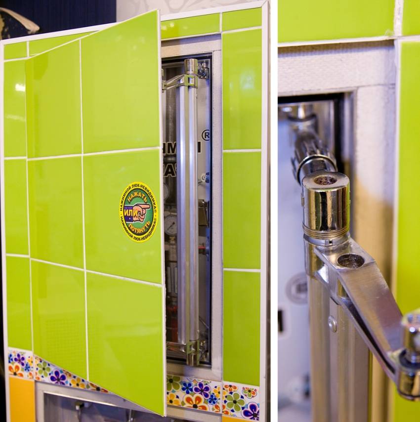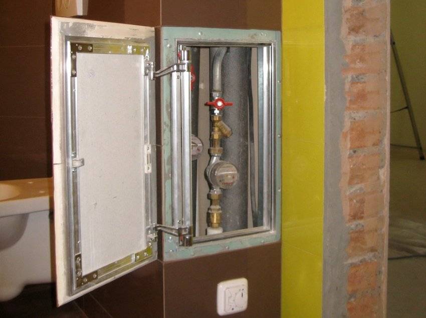 Чтобы без проблем осматривать и ремонтировать сантехнические приборы, трубопроводы, заменять счетчики, оставляют ревизионные ниши. Их закрывают специальными люками