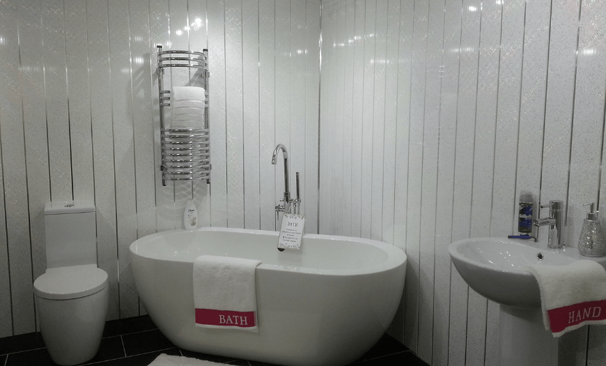 ПВХ-панели – один из самых экономичных и простых вариантов для обшивки ванной. Привлекательная цена, простая установка, с которой справится даже новичок, и большой выбор рисунков, которые можно комбинировать между собой.