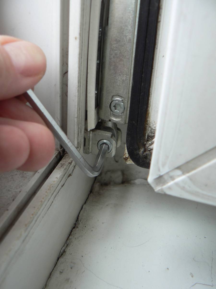 Нарушение диагонали из-за опущения дверцы на несколько миллиметров приводит к тому, что в момент открытия она упирается или задевает нижний порожек. Регулировка пластиковой балконной дверипредполагает поднятие створки и ее подтягивание шестигранником к верхней петле.
