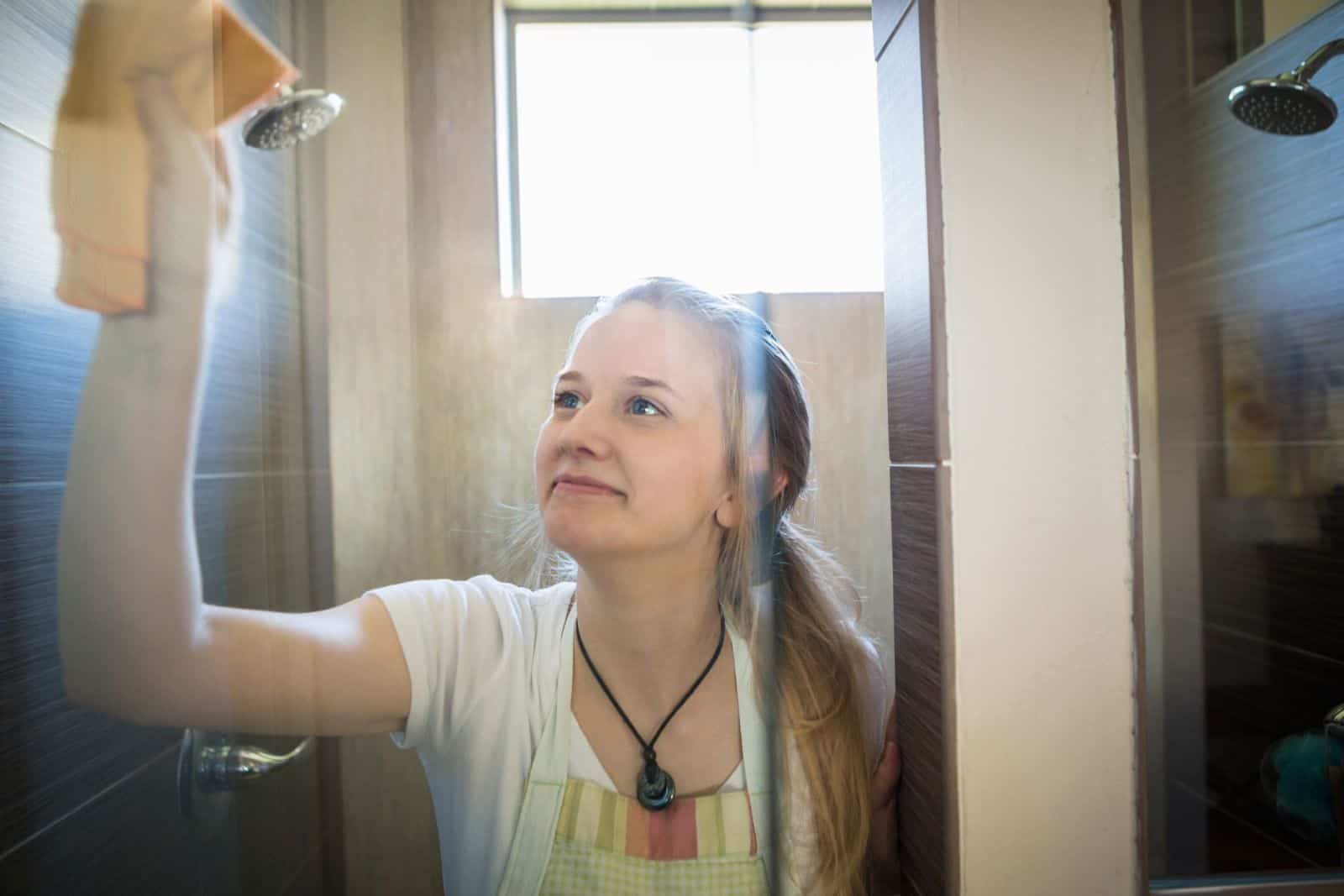 Чтобы дверные полотна из стекла как можно дольше сохраняли свой первозданный вид, за ними нужно правильно ухаживать. Стеклянные поверхности рекомендуется мыть каждый раз после принятия душа. Для этого они моются сначала горячей, потом холодной водой и вытираются насухо. Ежедневная уборка обеспечивает блеск створок и препятствует образованию соляных отложений.