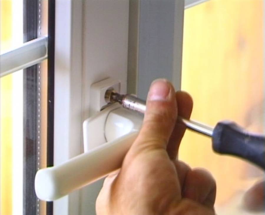 По истечении нескольких лет пользования пластиковой дверью ручка ее может расшататься. Чтобы устранить это, нужно повернуть верхнюю пластину основания ручки, под которой находятся крепежные болты, и затянуть их отверткой или шуруповертом.