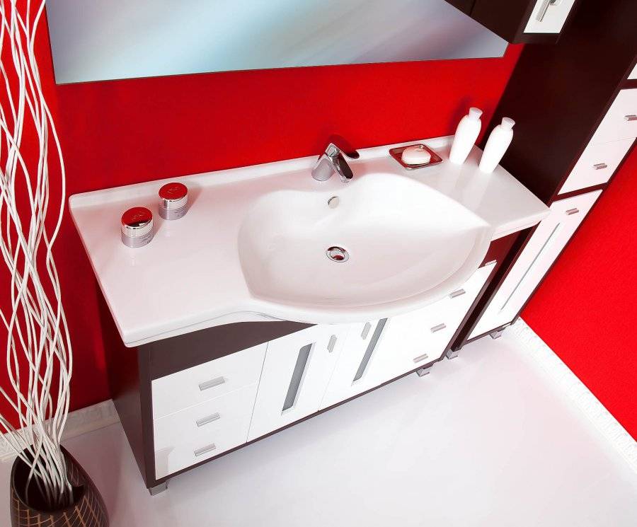 Также не следует забывать и о размерах тумбового умывальника – их диапазон достаточно велик. Если вам необходим умывальник небольшого размера, то обращайте внимание на напольную мебель – ее максимальная ширина составляет 900мм. Если нужно больше, то ничего другого не остается, как использовать настенный вариант – это полноценная мебель, ширина которой может доходить до 1,5м.