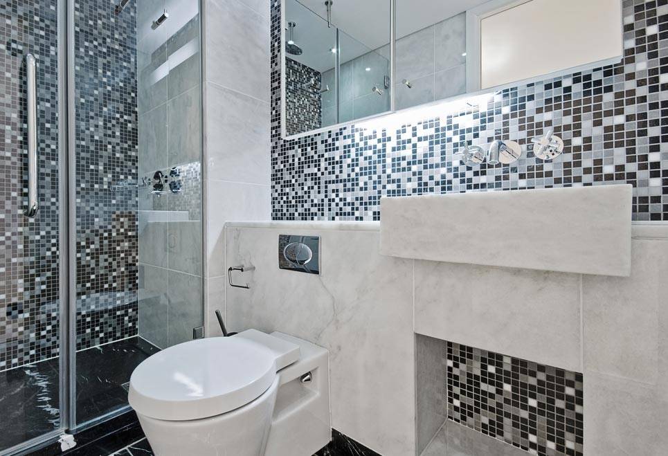 Подбор мозаики в ванную комнату небольшого размера осуществляется с учётом необходимости зрительного расширения стен. Осуществляться такой приём может несколькими приёмами: