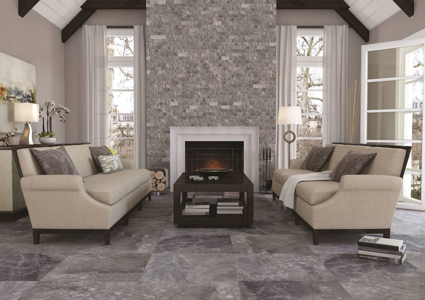 В интерьерных работах используют цветные сорта мрамора, так как белый мрамор отличается хрупкостью, а под воздействием неблагоприятных факторов может покрыться пятнами и потерять блеск. Серые мраморы лишены этого недостатка и широко используются для облицовки стен и пола, производства каменной мозаики, изготовления настенных панно, подоконников, столешниц и декоративных вазонов. В интерьерах частных домов и городских квартир мрамор используется практически во всех помещениях – в гостиных, холлах, ванных комнатах и на кухне.