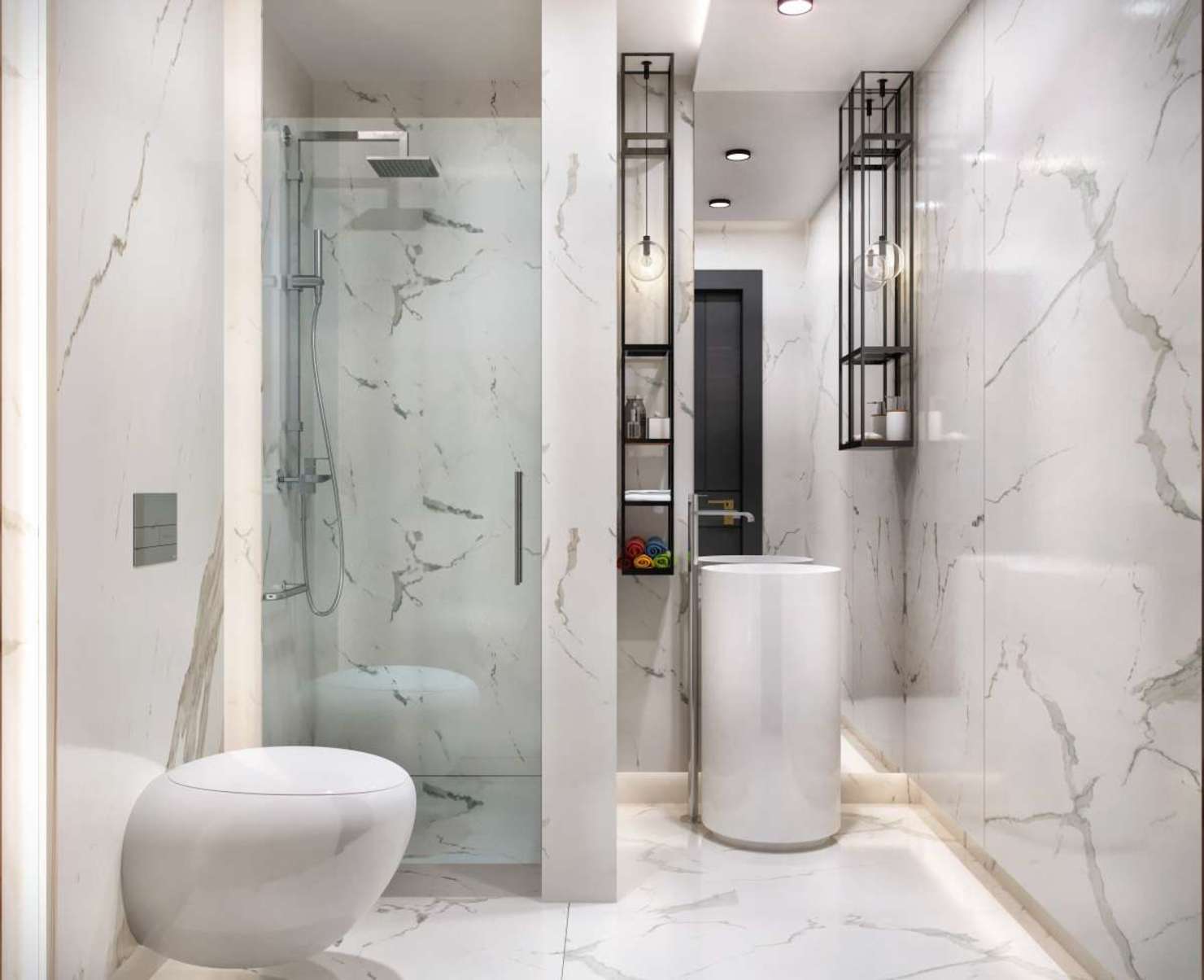 Использование мрамора светлых оттенков поможет визуально расширить пространство: аналогичного эффекта можно добиться применением облицовочного материала с отполированной до зеркального блеска поверхностью. Цветной мрамор с контрастным рисунком станет самостоятельным украшением ванной комнаты: облицовка таким материалом требует лаконичной мебели и минималистичного декора.
