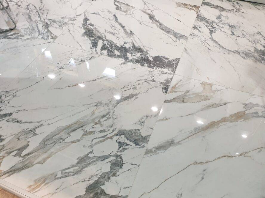 Новейшие разработки позволяют получить красивую имитацию с «натуральным» мраморным рисунком. Такие изделия выглядят в интерьере очень эффектно – мраморную плитку используют для пола