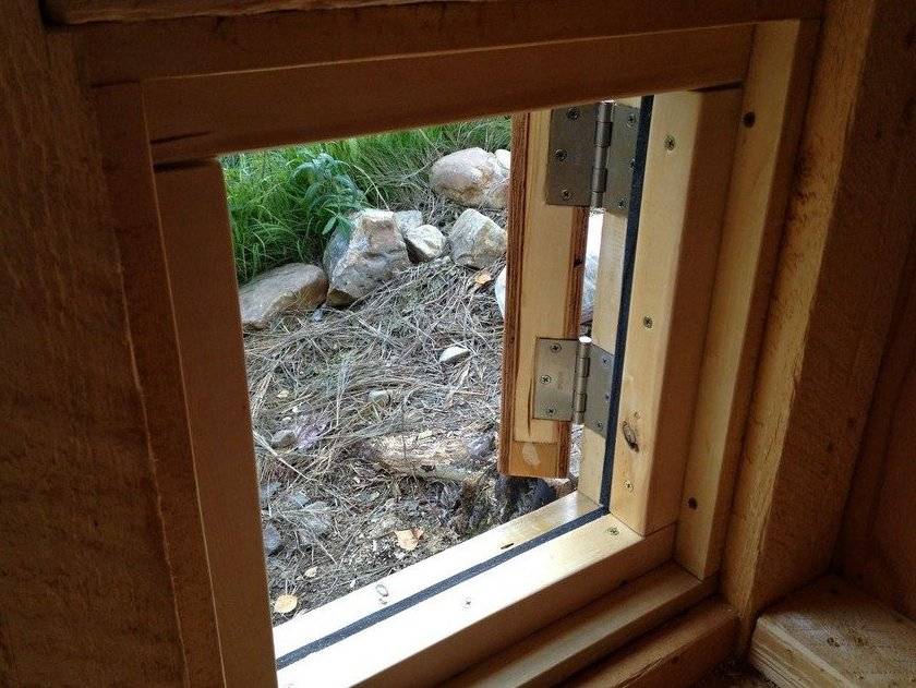 Элементарная система вентиляции подразумевает проветривание открыванием окон и двери. Главная задача — расположить проёмы окон так, чтобы птица не страдала от сквозняка.