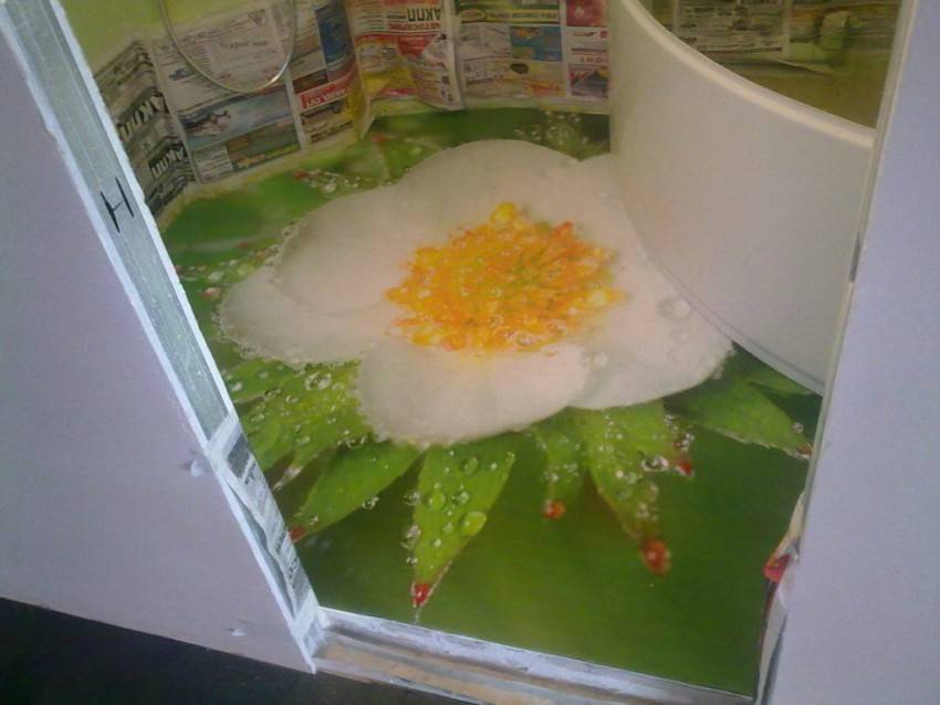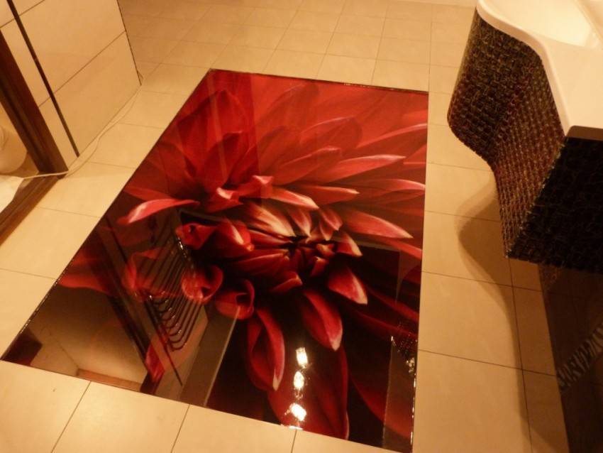 Как говорилось выше, хозяин ванной определяет, какое изображение будет на полу. Изображение заказывается в компании, занимающейся созданием рисунков для полов. Пока там занимаются его изготовлением, происходит подготовка основания.