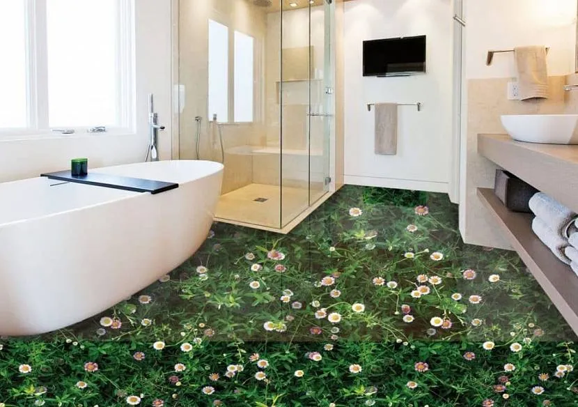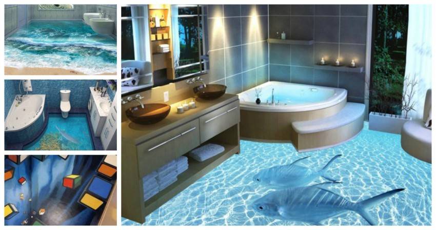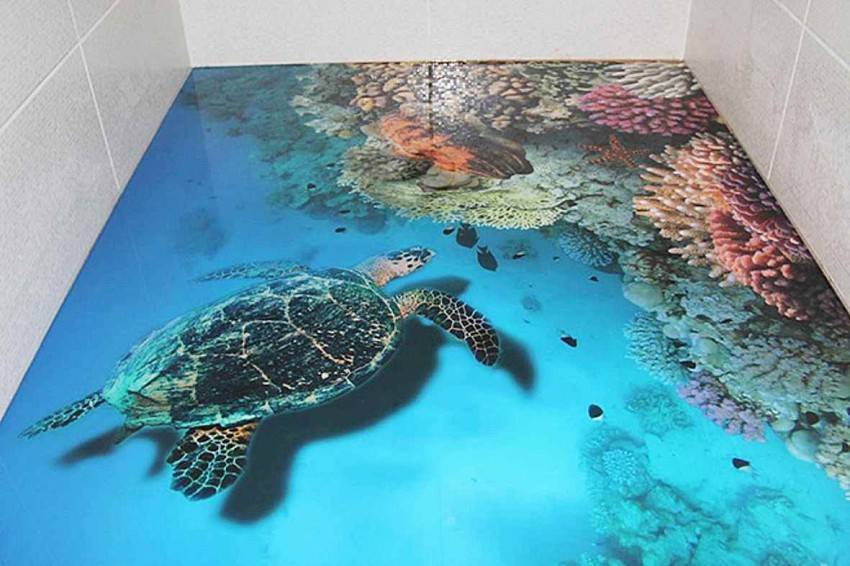 На заметку! Из-за высокого уровня влажности в ванной комнате 3D полы, как правило, не эксплуатируются дольше 15 лет. После этого покрытие будет нуждаться в ремонте или замене.
