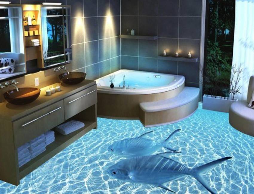По своему функционалу 3D полы соответствуют всем требованиям, которые предъявляются к напольному покрытию в ванной комнате. Их основные положительные свойства: