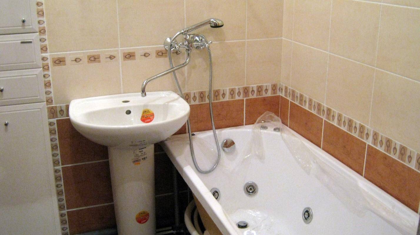 Высота смесителя над ванной определяется удобством регулировки воды при использовании обоих сантехнических приборов, доступностью регулировочного рычага или вентилей для лежащего в ванне человека.