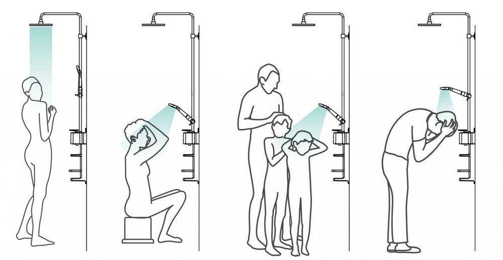 Для правильного выбора положения принимают во внимание состав пользователей и их габариты, а также привычные позы во время принятия душа. Если в душевой кабинке (отсеке) предусмотрено сидение, корпус смесителя монтируется с учетом удобного доступа к нему сидящего пользователя