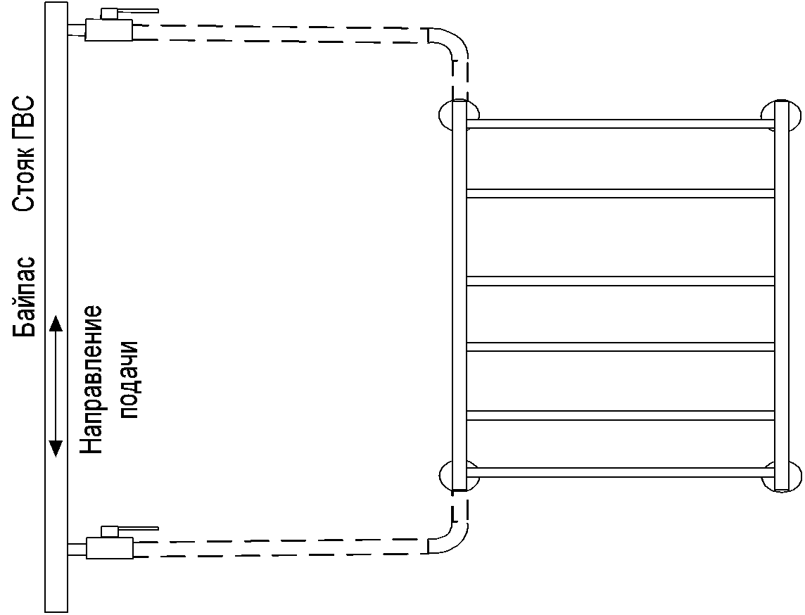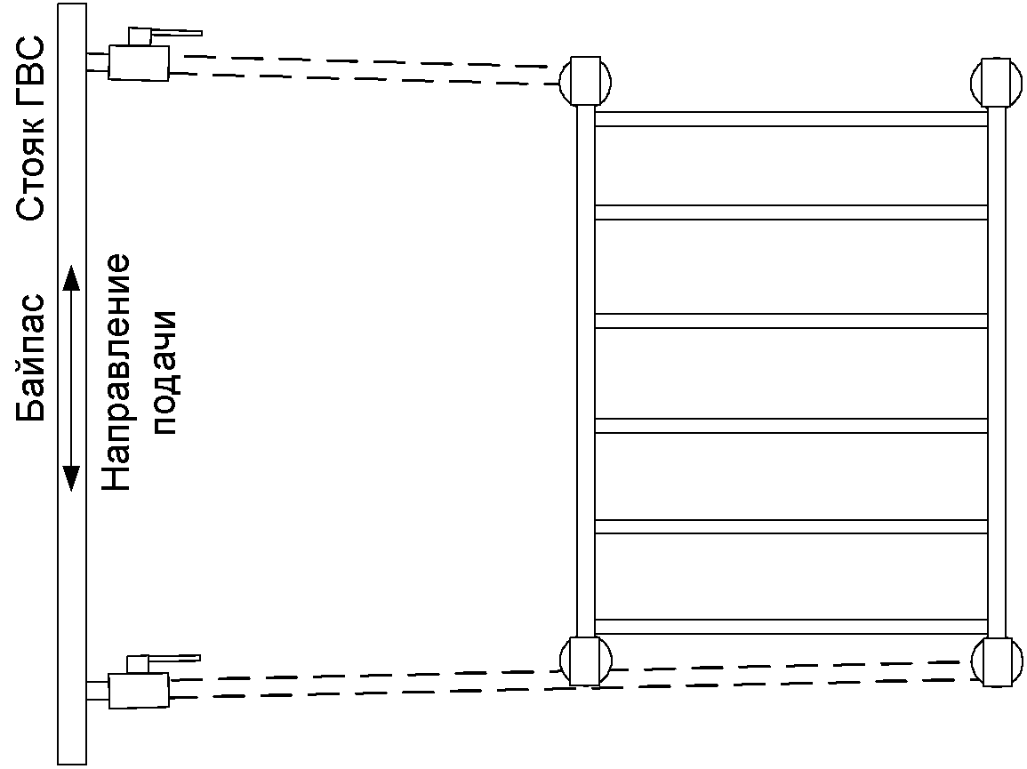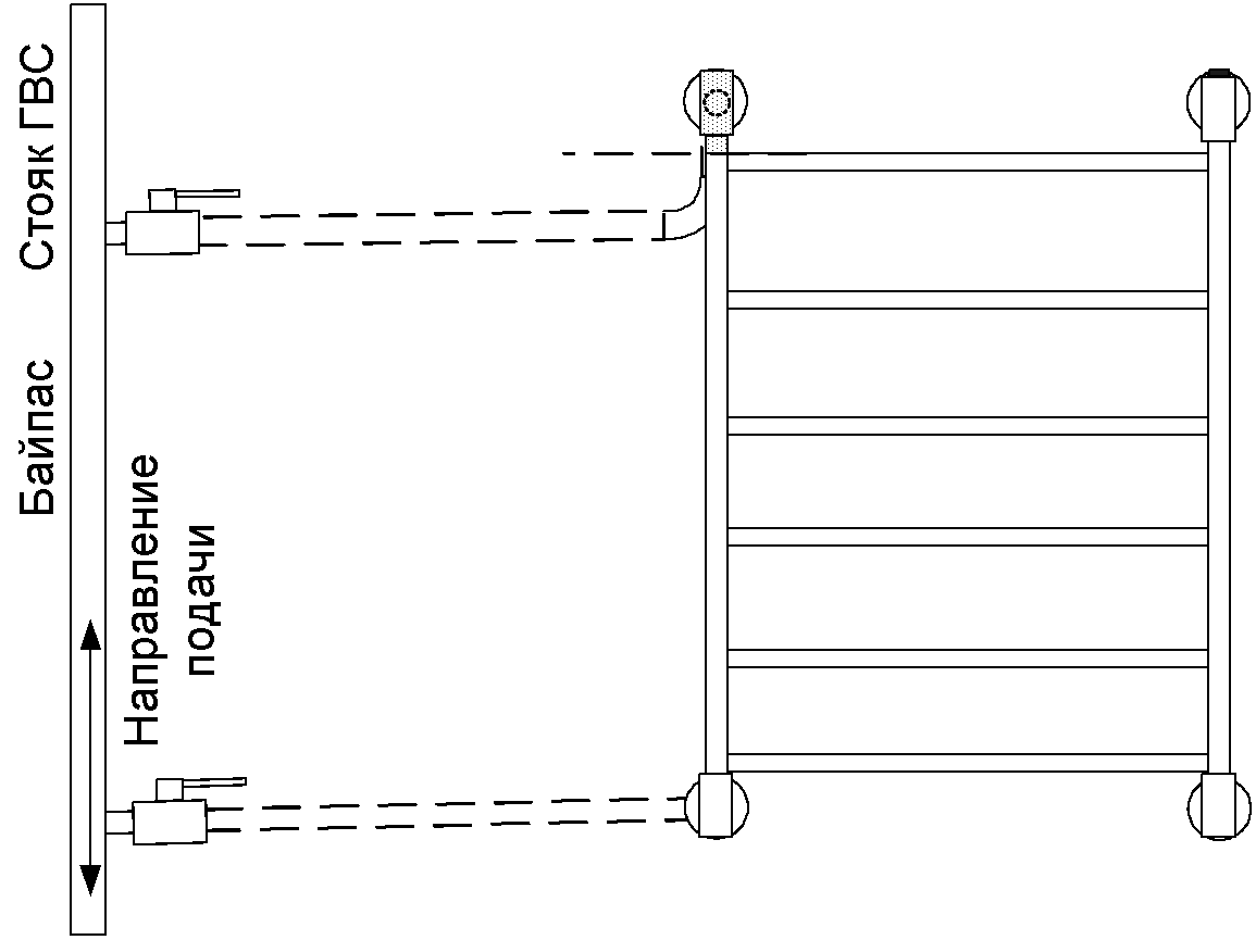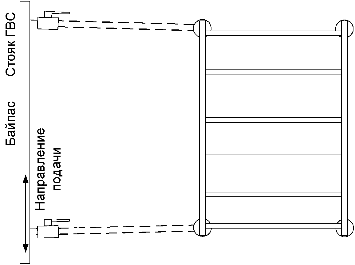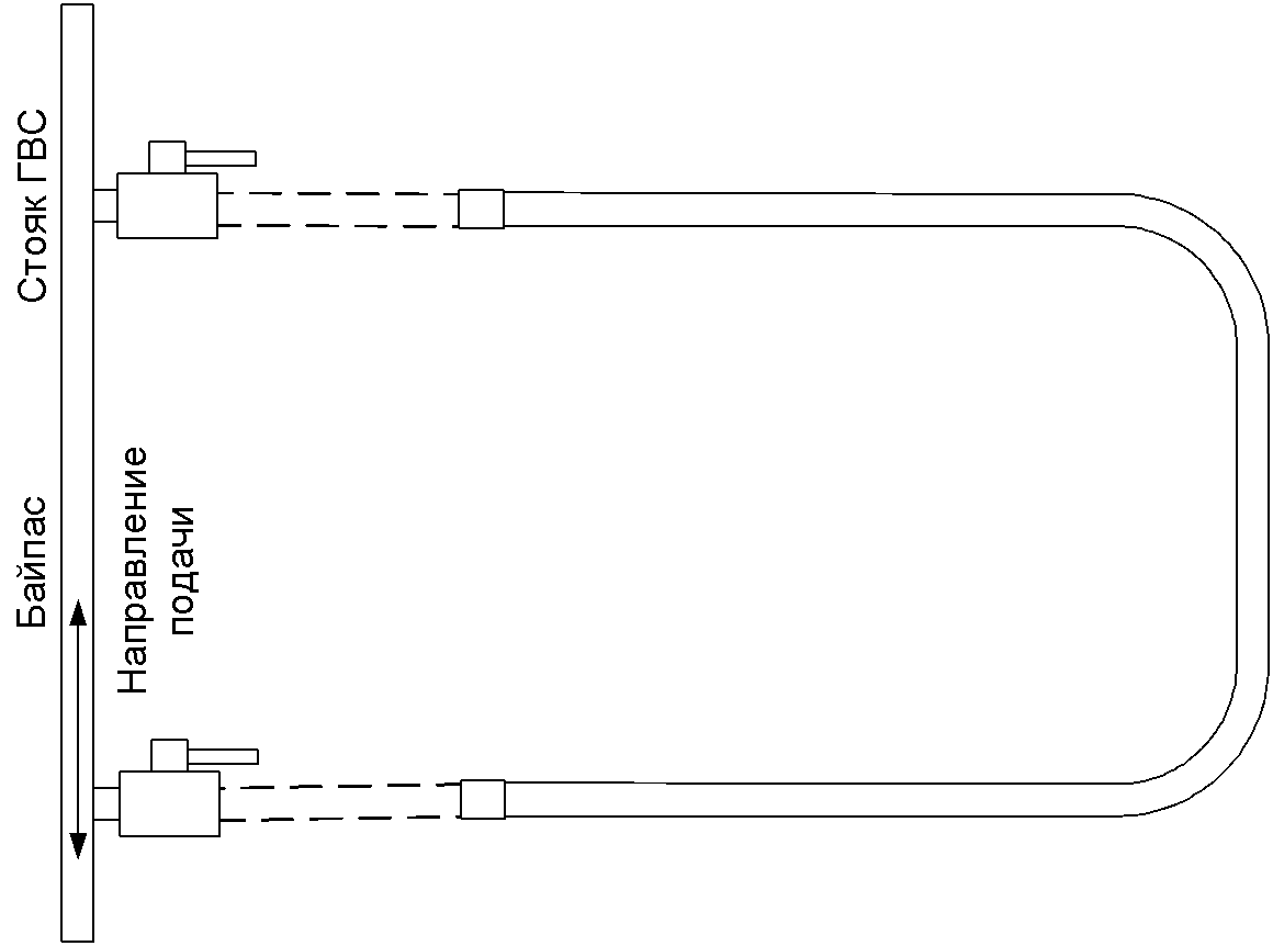При этом направление движения воды в системе полотенцесушителя и по подающему трубопроводу ГВС должно совпадать.