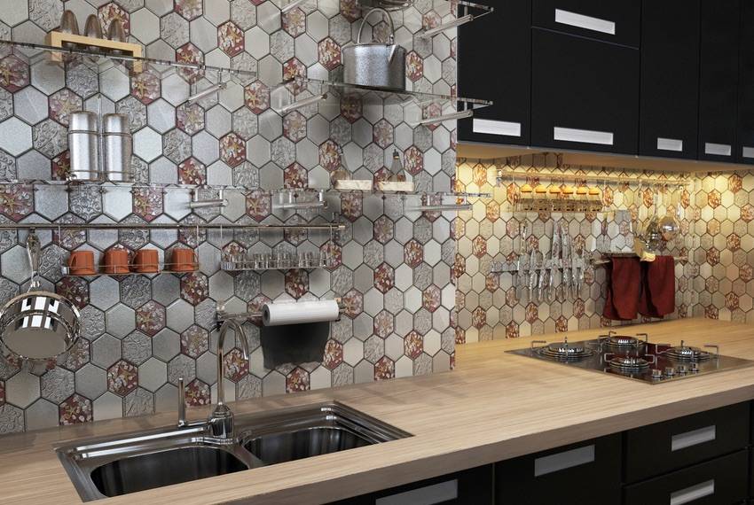 Шестиугольная крупноформатная мозаика – необычная модель керамики для стен