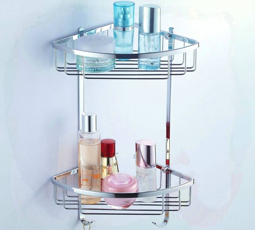 Угловые полочки помогут отлично сэкономить пространство комнаты. Некоторые модели идут с подсветкой из светодиодов, такие полки будут выгодно смотреться, и задавать некую изюминку любому интерьеру. Полочки могут крепиться как на саморезы, так и на присоски. Если вы будите располагать на полке легкие принадлежности, такие как стаканчик, со щетками, мочалки, зубную пасту – то стоит присмотреться к угловым полочкам на присосках. Если же место на полках будут занимать гели для душа, шампуни и прочее – то однозначно стоит выбрать крепление с саморезами.