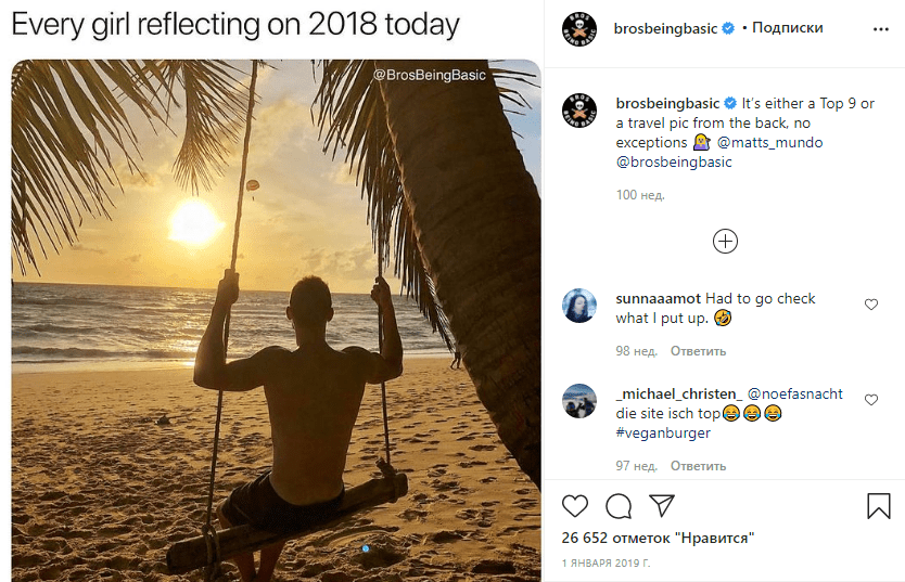 Некоторые парни умеют преподнести фото. Они просто берут популярные женские фотографии и повторяют их. В результате получаются необычные, но при этом очень узнаваемые кадры, которые быстро набирают популярность среди аудитории.