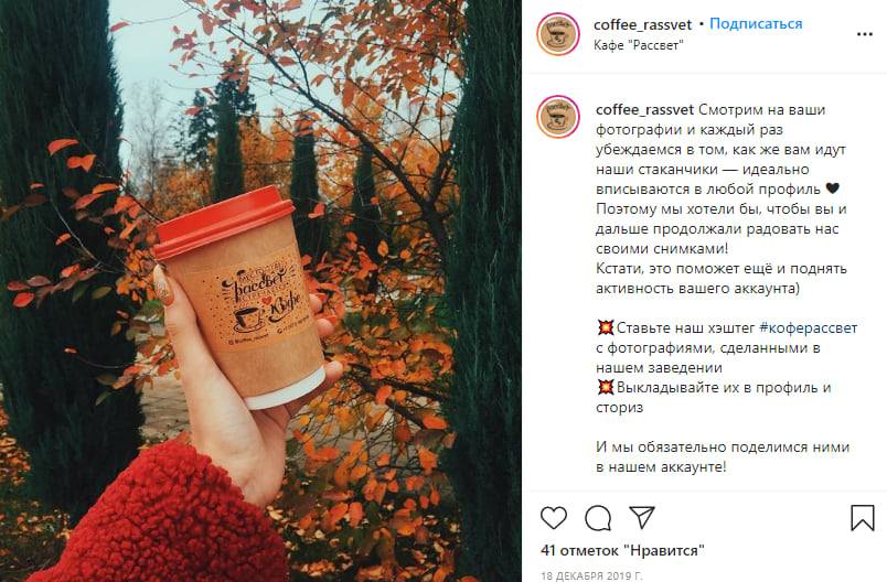 Отличный способ поднять активность — показать кофе. Такой стаканчик стал героем, наверное, половины фотографий в Инсте
