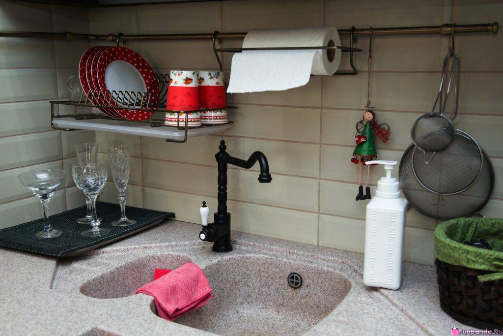 Как правило, даже на убранной кухне зоркий глаз аккуратной хозяйки за что-то да зацепится. И чаще всего это рабочая поверхность и раковина. Чем меньше в этой зоне наставлено бутылочек и мелочей, тем аккуратнее всё выглядит. А куда девать главную помощницу — тряпочку, которая портит весь вид? Без этой вещи на кухне не обойтись, а если она лежит на раковине или висит на кране, то портит впечатление о кухне.