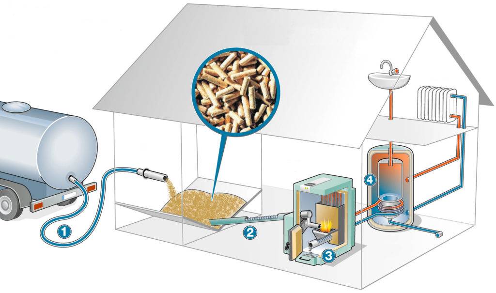 - Удобство хранения – достаточно сложить мешки с гранулами в любом удобном месте. Также для этого можно предусмотреть вместительный бункер;