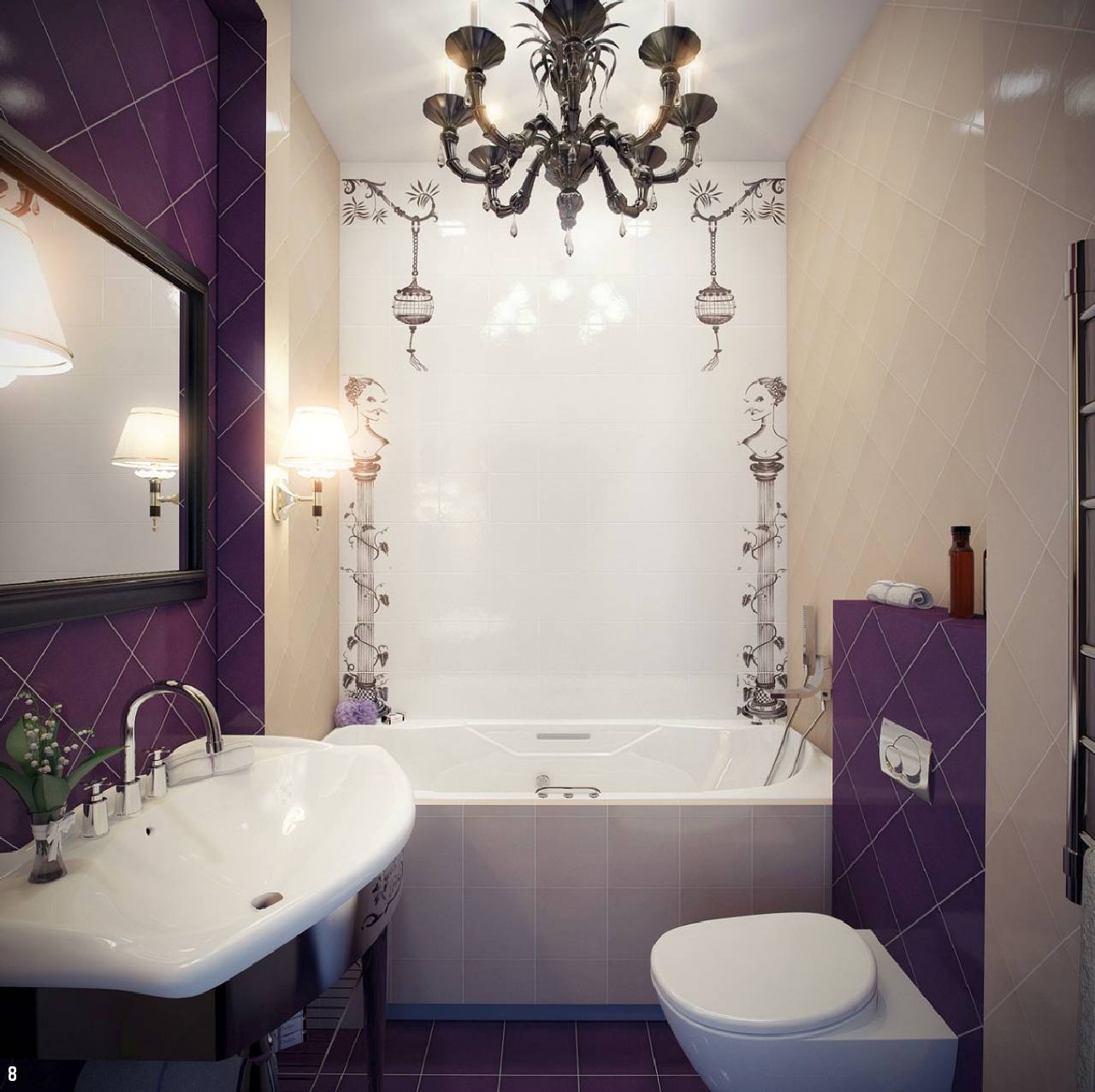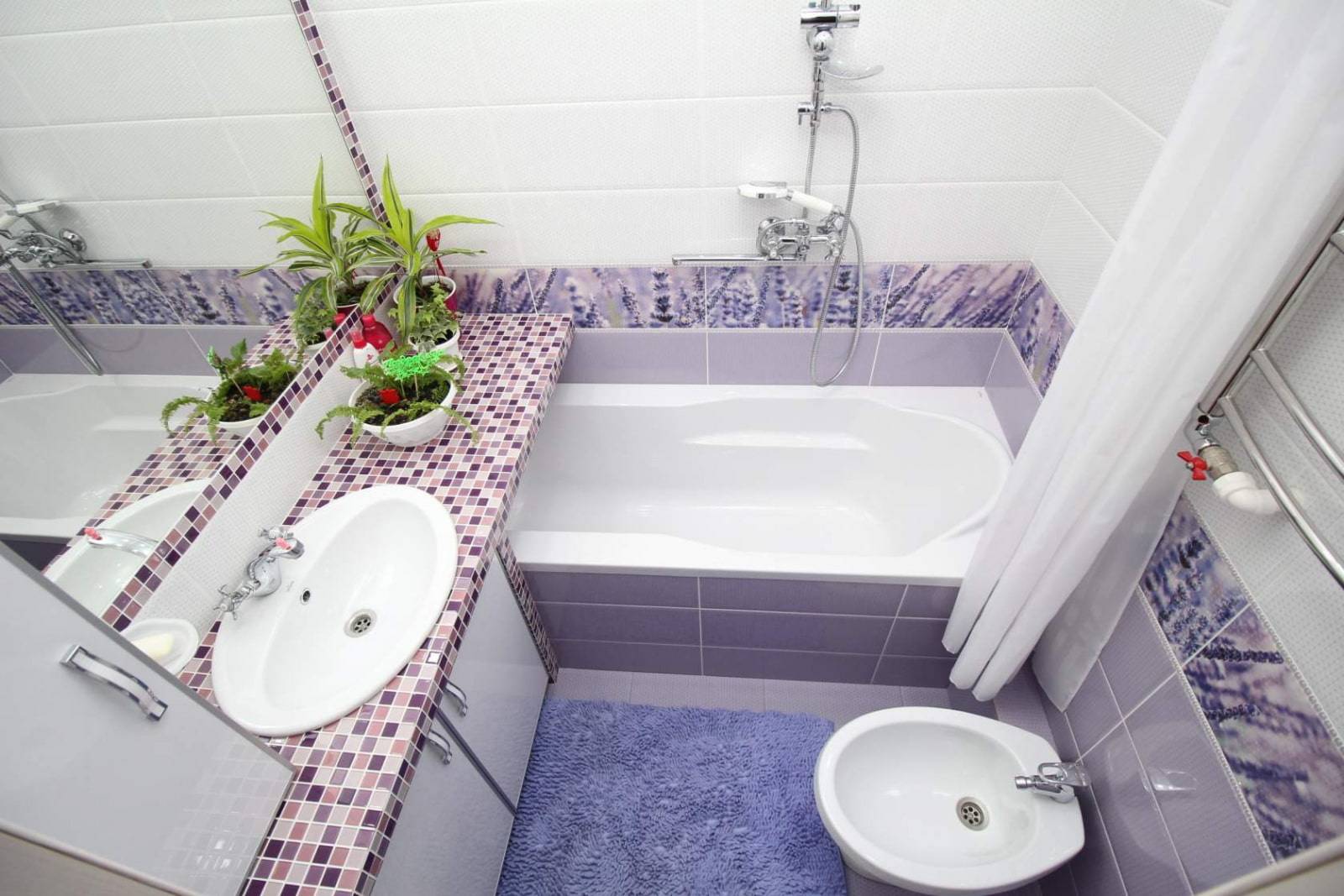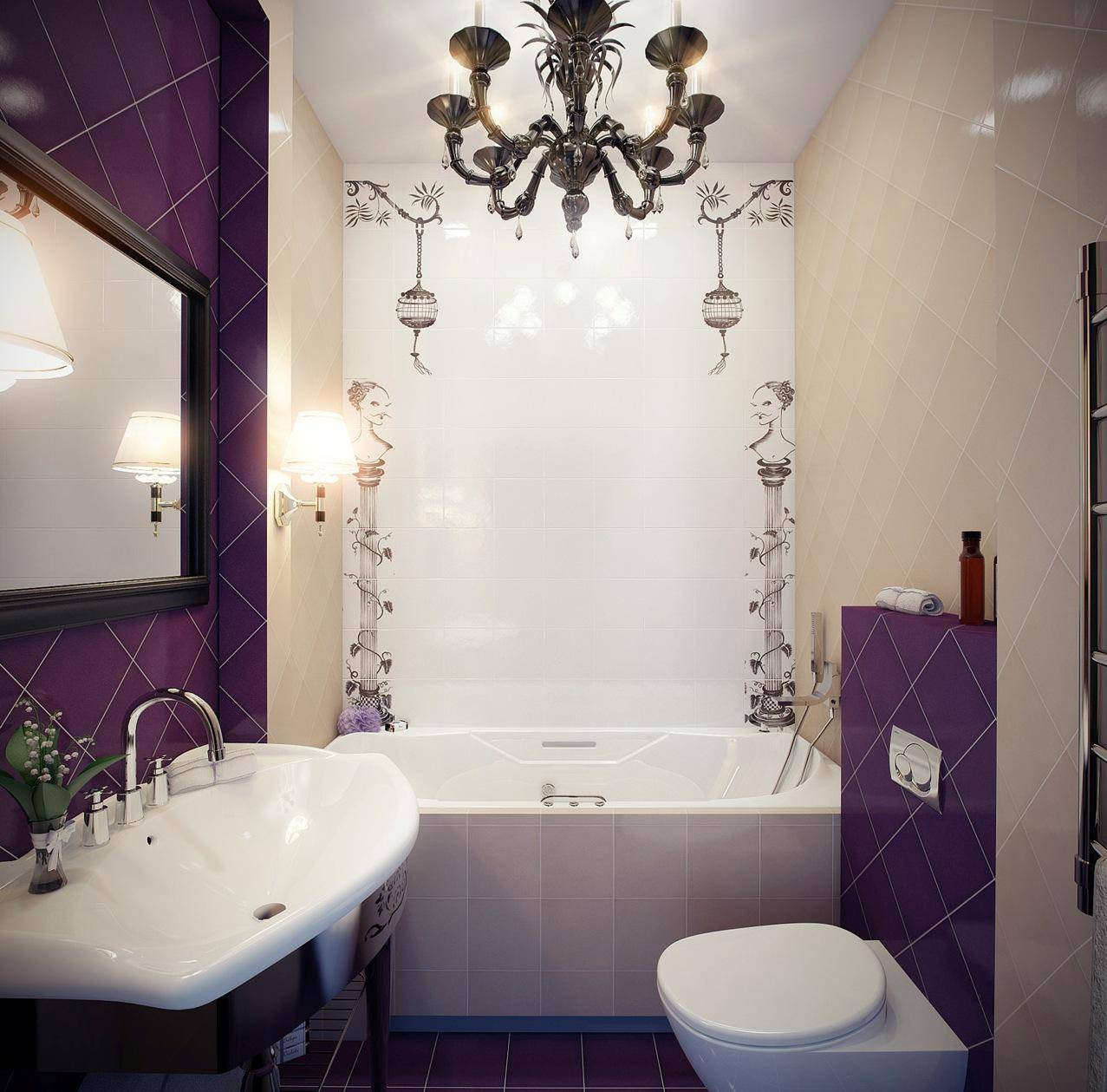 Фиолетово-белая ванная