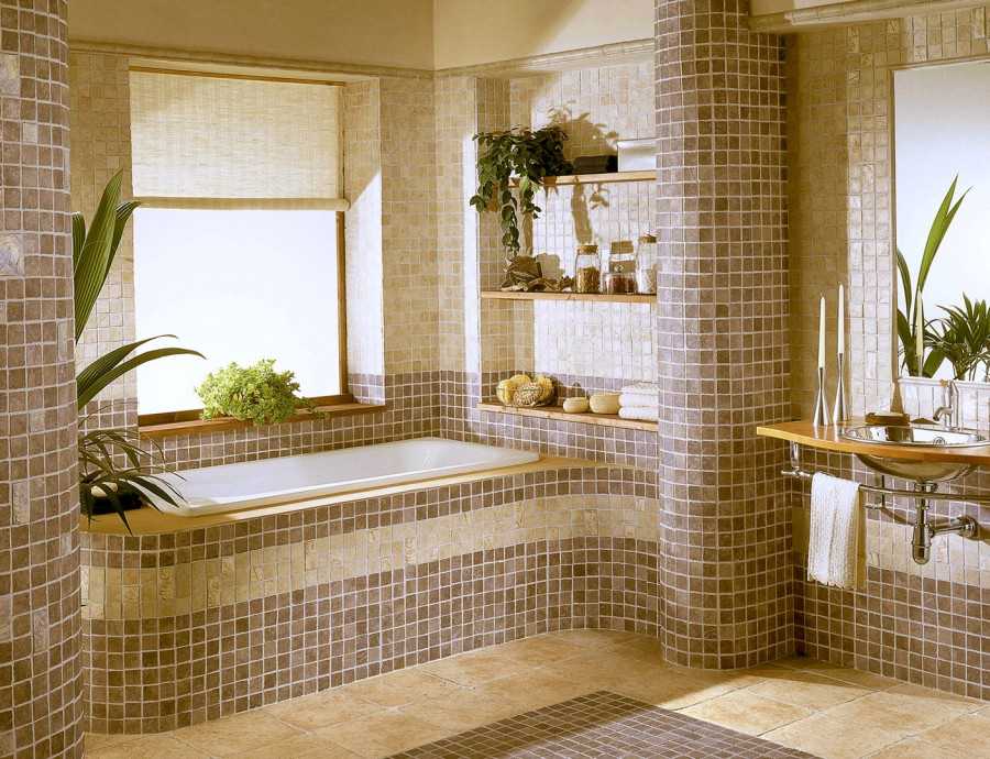 Вариант декора ванной комнаты для плитки требует особого внимания. Наиболее популярным рисунком на плитке в ванной является мозаика.
