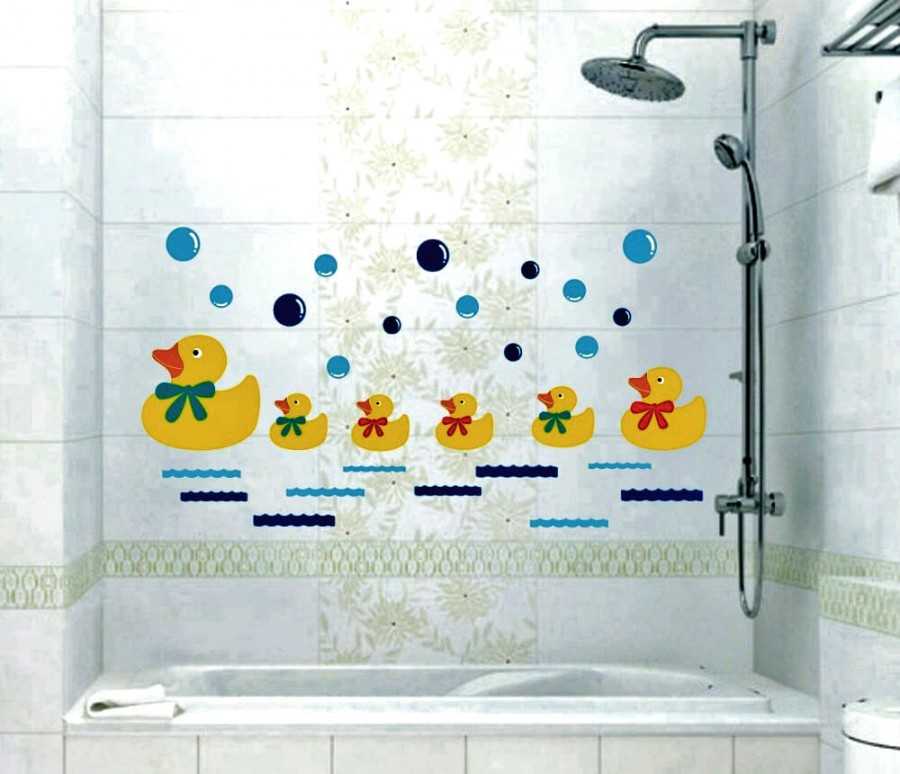Во-первых, возможно использование для их украшения разнообразных виниловых наклеек. Они отличаются широким выбором иллюстраций, приспособлены к высокой влажности, не вызовут сложностей при креплении.