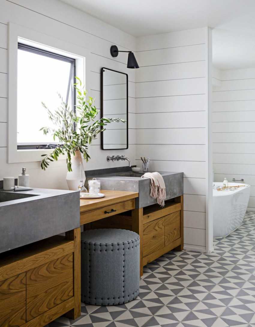 Мнение, что в декоре ванной уместно использовать только плитку, давно устарело. Добиться эксклюзивности в дизайне помогут и другие строительные материалы, которые все чаще применяют на этапе отделочных работ.