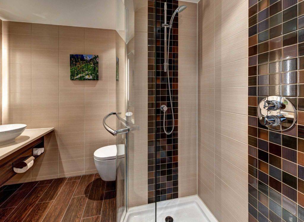 С эстетической точки зрения важно учитывать способ раскладки, расположение декора и комбинации цвета в соответствии с площадью помещения. Отделка способна визуально изменить пропорции комнаты