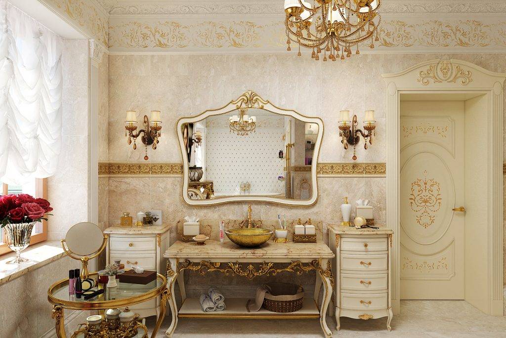 Барокко предпочтительна укладка плитки классическим способом. Отделочный материал должен быть в сдержанных пастельных тонах. При таком подходе ванная комната станет изюминкой дома;