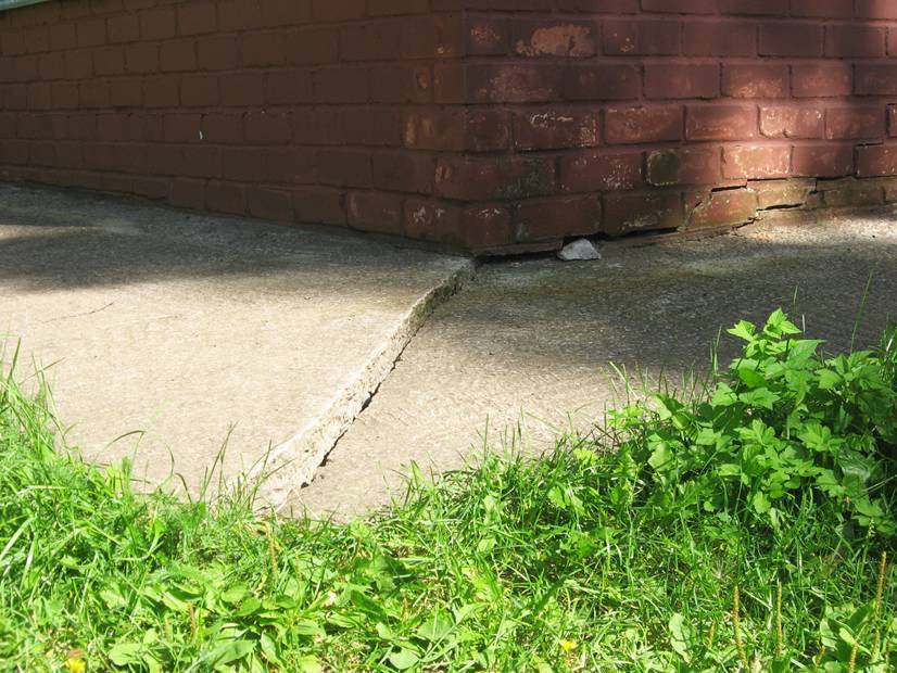 Из-за недостаточного тромбования песка происходит усадка отмостки, что в итоге приводит к трещинам и её отрыву от строения