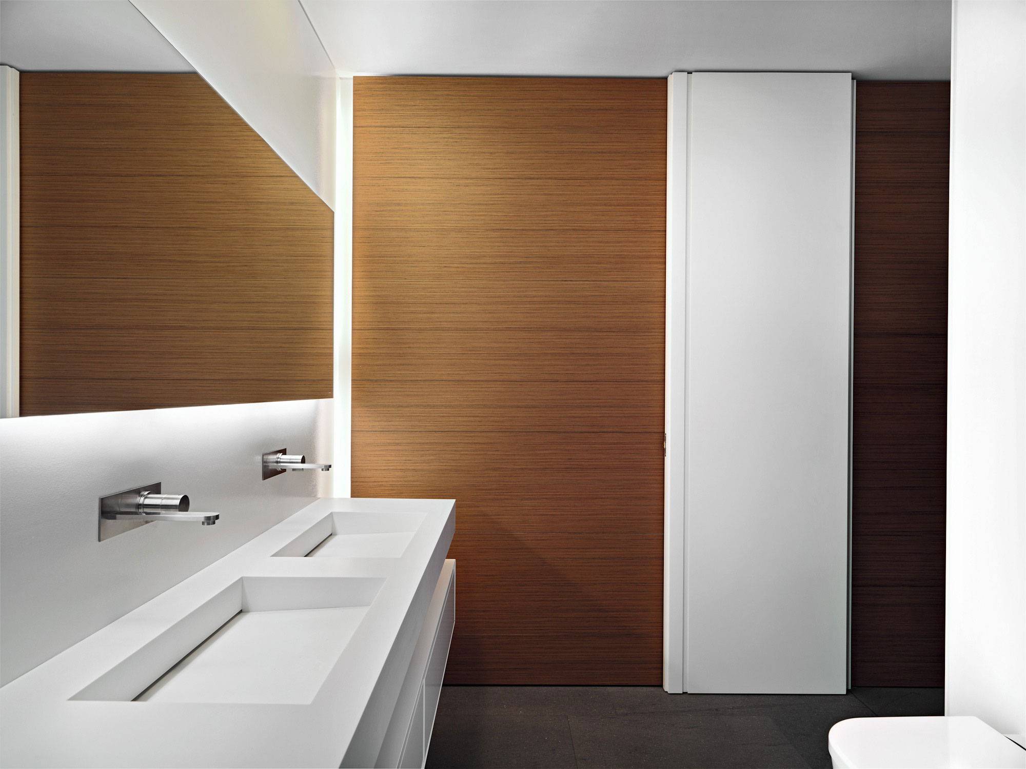 Встроенные в стену краны выглядят намного дороже и стильнее. Они меньше пачкаются от брызг воды.