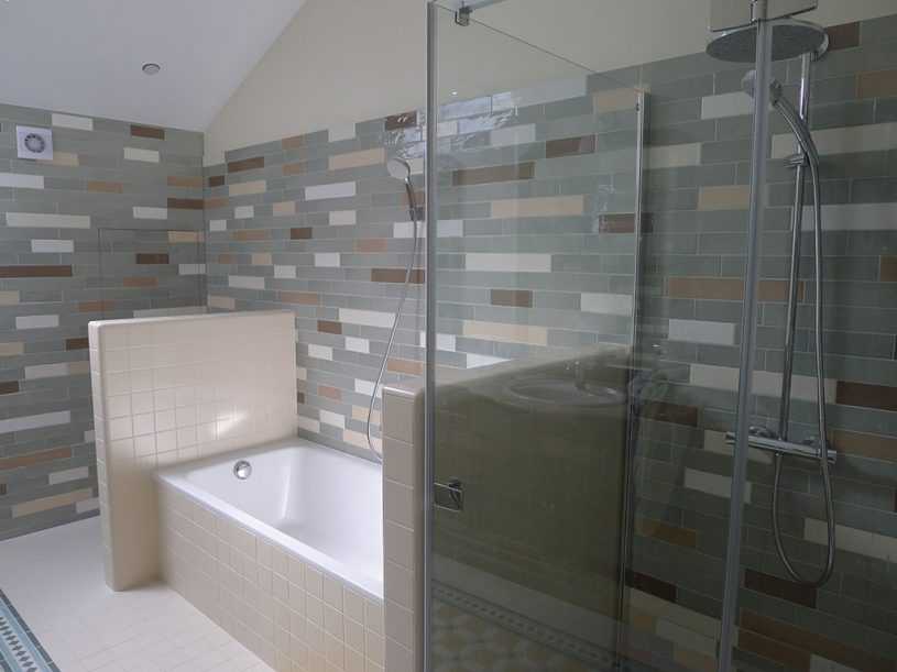 Вариант 5. Отделка стен произведена керамической плиткой с зеркальными вставками.