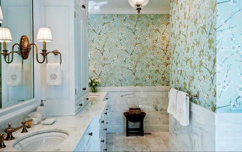 Конечно же, здесь не подойдут обычные обои и клей: а только стекловолоконные варианты, либо виниловые обои, имеющие акриловое, эпоксидное покрытие, и влагостойкие клеи.