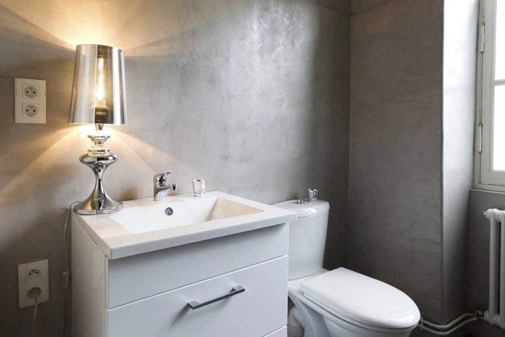 Декоративная штукатурка под бетон в минималистическом интерьере ванной комнаты
