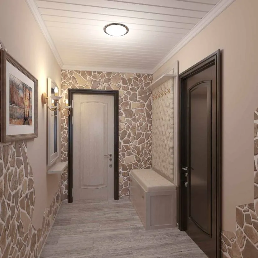 Чтобы убедиться во всём вышеперечисленном, обратите внимание на фотографии, где видны помещения, отделать которые хозяева решили элементами природного происхождения;
