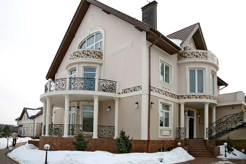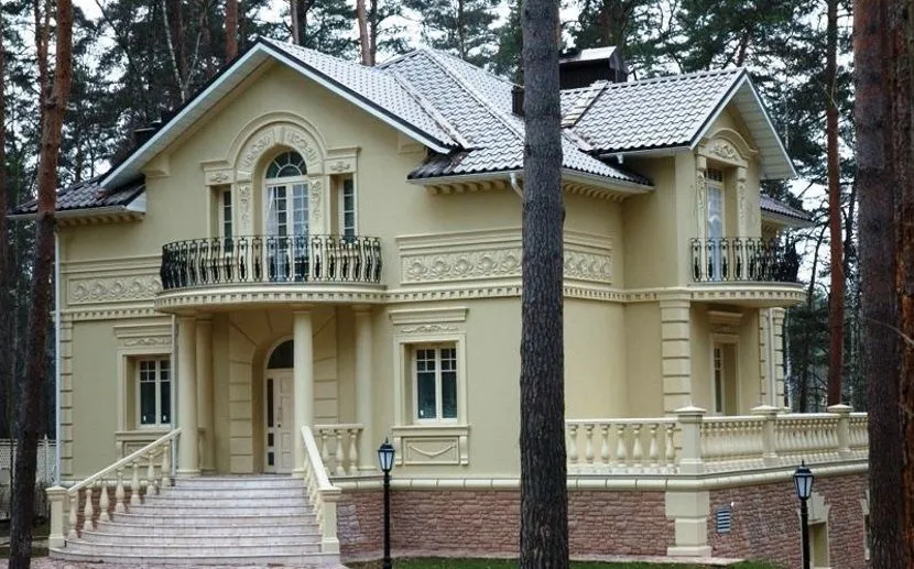 Двухэтажный особняк со светлым фасадомИсточник artfasad.com