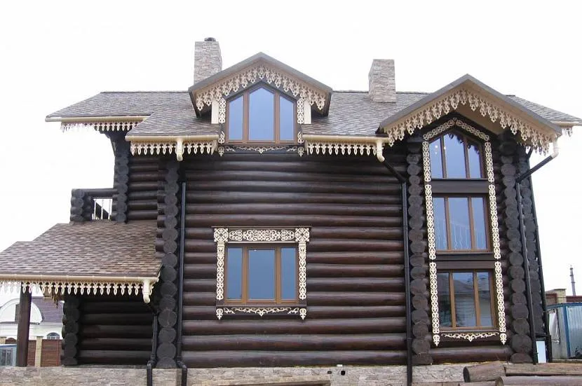 В домах из бруса внешний вид здания формируется за счет наружной поверхности стен.