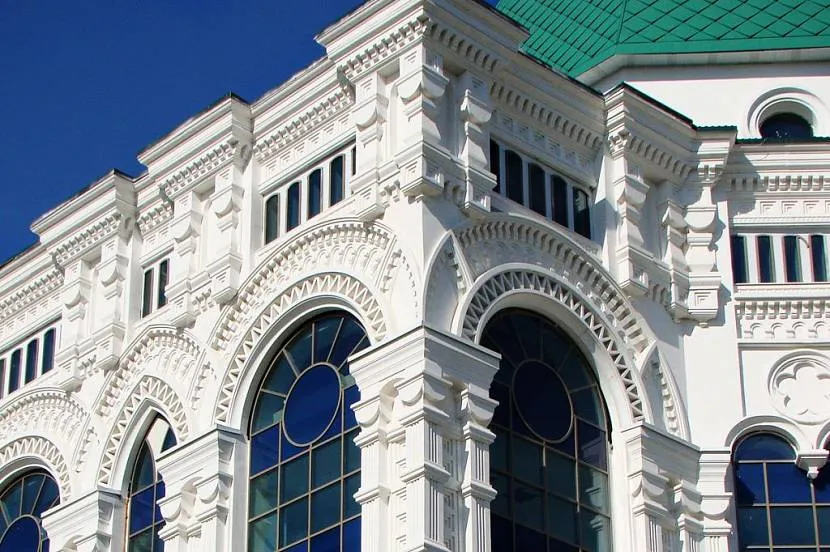 Зонирование фасада может быть вертикальным и горизонтальным. Например, центральные элементы поверхности фасада выполнены с использованием однотонной фасадной штукатурки, а остальные зоны выложены кирпичом. Для того чтобы визуально смягчить массивность здания, на угловых участках фасада следует разместить окна.