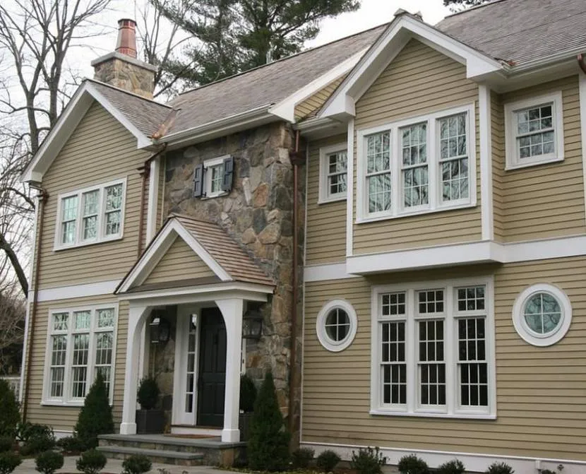 - Привлекательный внешний вид. Обычно домом любуются с расстояния не менее 3 м, а с этой точки «дешевизны» пластика заметно не будет.