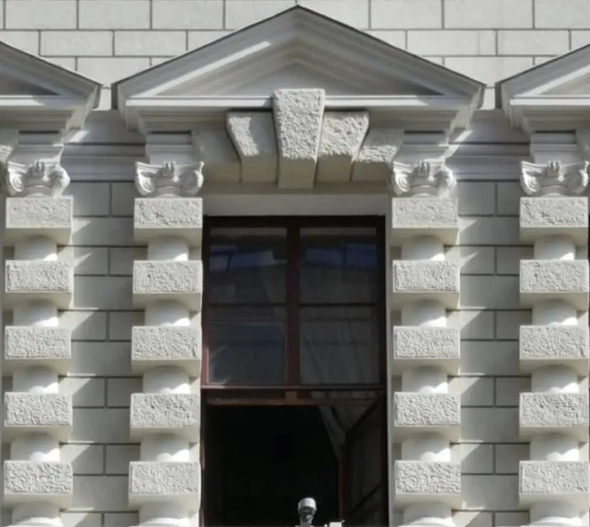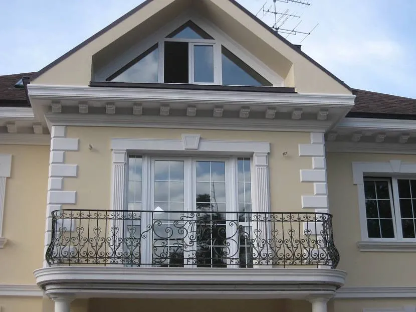 Чтобы визуально вытянуть здание, сверху окон устанавливают замковый камень. Элементы клиновидной формы располагают над блоком. Зону над стеклом часто украшают тимпаном. Декор в виде арки гармонично сочетается с лепниной, розетками или орнаментом.