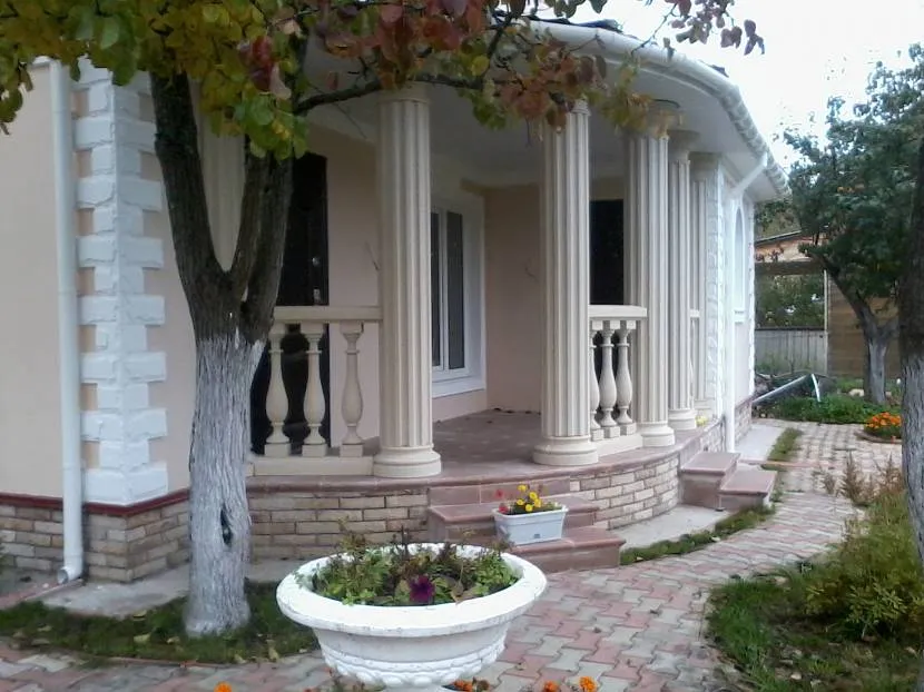 Объемная часть украшения здания помогает визуально увеличить или уменьшить стены. Роскошный элемент устанавливают рядом со входом или размещают вдоль фасада. Детали объединяет горизонтальное покрытие. Венчает конструкцию декоративный капитель. Колонны бывают круглыми, квадратными и половинчатыми.