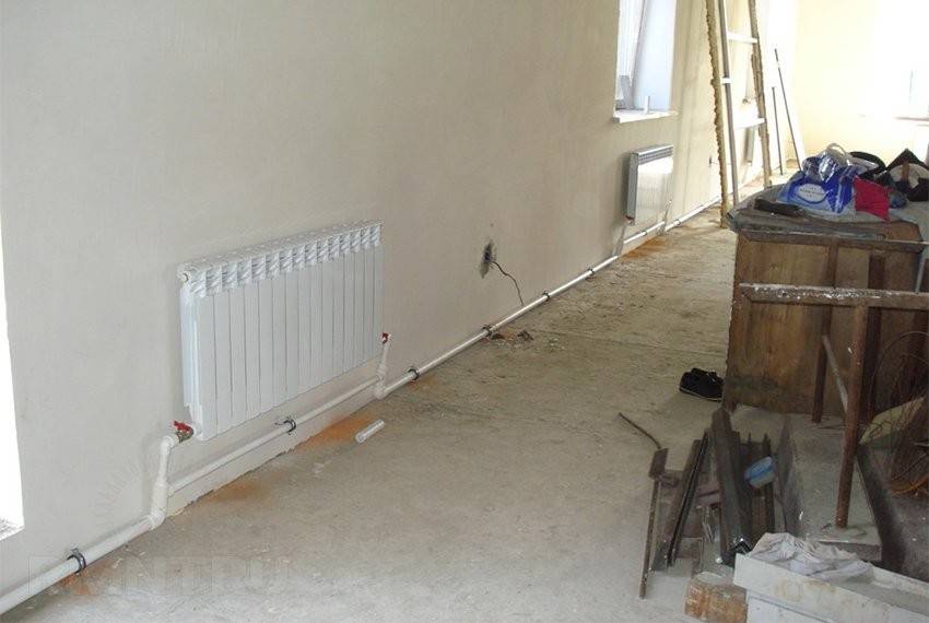 После завершения монтажа батарей переходят к разводке труб и установке сопутствующих узлов.