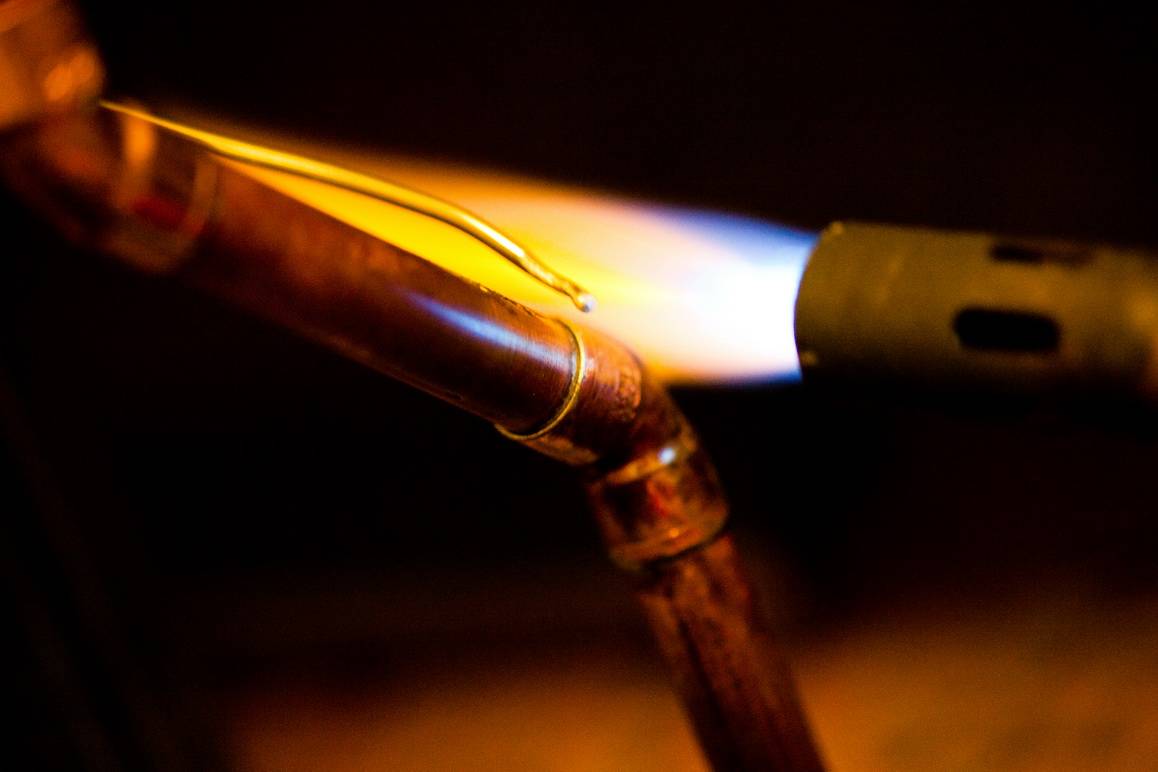 Пламя горелки направляется на стык двух элементов. Для равномерного прогрева необходимо постоянно менять положение контактного пятна между огнем и трубой. Во время нагрева на соединительный зазор периодически наносится припой, который затем расплавляется под воздействием температуры.