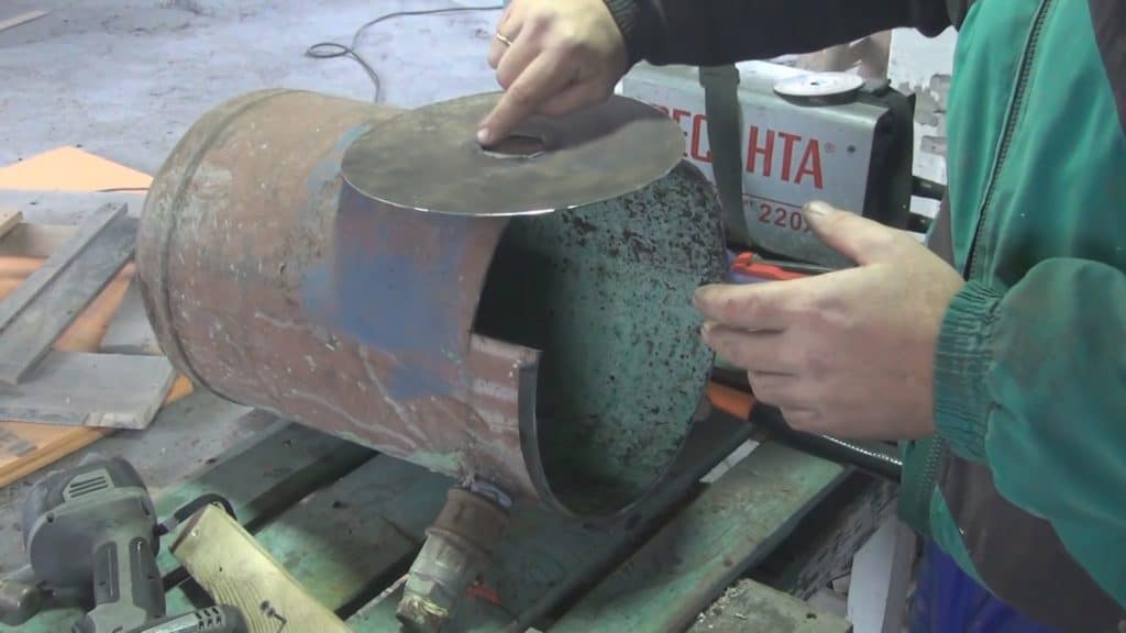 - Металлическая бочка. Инструкция по изготовлению аналогична предыдущим вариантам. Для подготовки нужно вырезать верх и использовать его в качестве воздухоотвода.