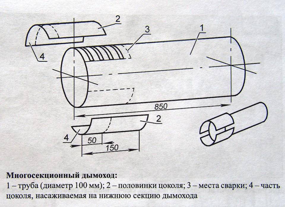 Главное – рассчитать диаметр трубы. Если этот диаметр будет слишком велик, то все тепло будет уходить в атмосферу. Если мал – не будет тяги, печка будет дымить. Диаметр (в мм) должен быть в 2,7 раза больше объема буржуйки в литрах. Емкость определяется без объема пространства ниже колосников (высота равна расстоянию от верха до колосника).