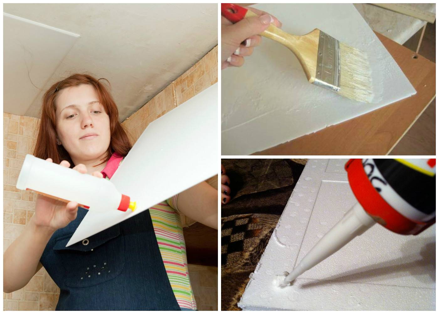 Пенопластовая и полистирольная потолочная плитка является достаточно «неприхотливым» материалом и крепится практически на любую поверхность.